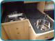 Wnętrze jachtu z wysokością stania jest obszerne i zaaranżowane tak aby zapewnić prywatność załodze w trzech zamykanych kabinach i możliwość wspólnego przebywania w messie dla nawet dziesięciu osób.