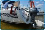 Wyposażenie dodatkowe: bramka do kladzenia masztu, sztywny sztag, roll fok, lazzy jack, instalacja wody - zbiornik, radio, mp3, TV, lodówka, ogrzewanie, instalacja 230 V, oświetlenie kokpitu, echosonda